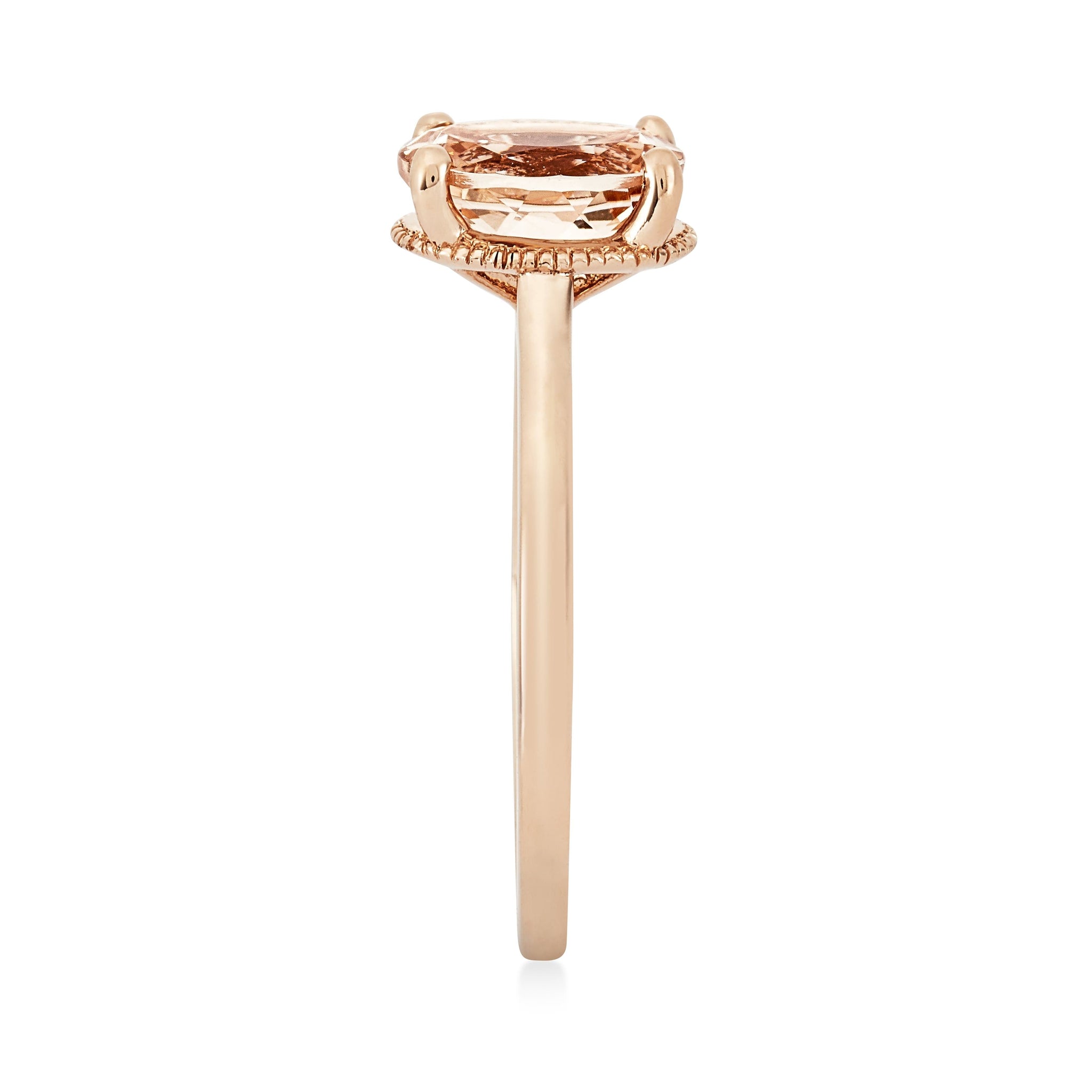 This 14k recycled rose gold ring features an ethically sourced solitaire oval morganite, the peach coloured morganite complimenting the rose gold band perfectly.